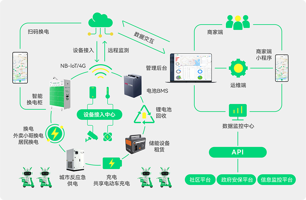 东方易电基于区块链、物联网、人工智能、大数据等技术,提供换电系列产品及服务, 锂电池充-租-换-储管理系统、锂电池管理系统(BMS)、锂电池远程控制系统、智慧城市微电网、 锂电池共享充/换电柜、北斗GPS定位终端等,形成了一个综合性的服务架构。